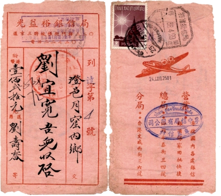 20世纪40年代起,泰国批信局开始各自印制薄纸侨批封。